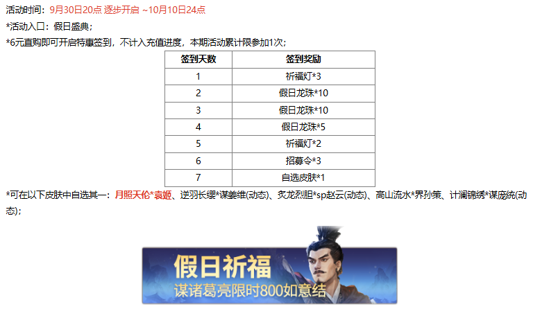 1、假日许愿 谋诸葛亮、界郭淮上新,指定武将限时折扣!