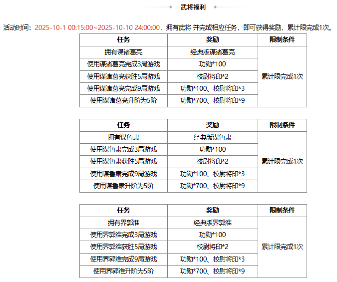 *本期上新 假日龙珠活动(谋鲁肃)、返场 小年龙珠活动(谋袁术)、25出伏龙珠活动(界王异)、踏春龙珠活动(谋文丑)、小雪龙珠活动(韩馥),龙珠可购买时间:2025-10-1 00:15:00~2025-10-10 24:00:00;