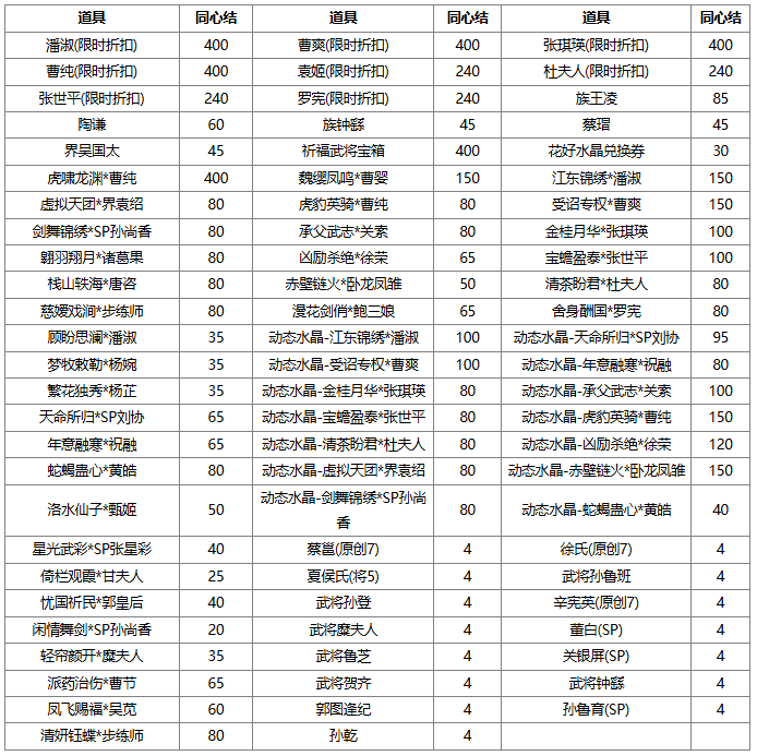 1、同心结可兑换奖励,若兑换奖励是在此次活动前已拥有的永久武将、皮肤、三国秀,则无法重复兑换。