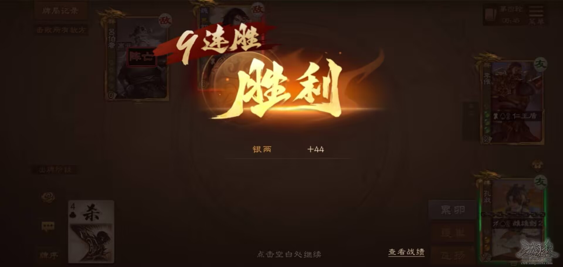 输出能力一般、没有运营过牌能力的武将,孔淑能凭借印卡稳定不断杀、不断防御牌。人越少没有多连环角色,越肉。