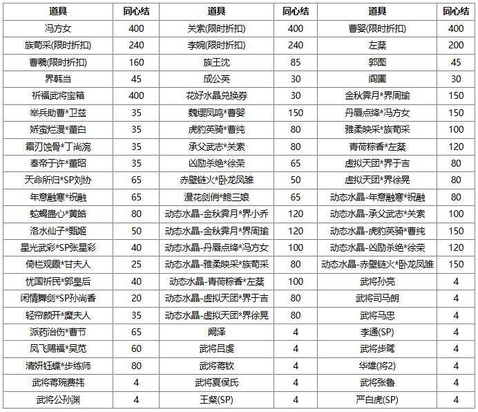 1、同心结可兑换奖励,若兑换奖励是在此次活动前已拥有的永久武将、皮肤、三国秀,则无法重复兑换。