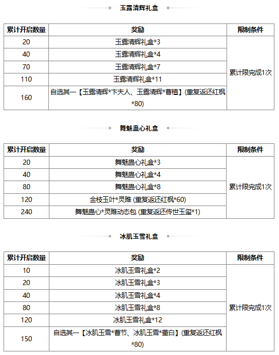 活动礼盒打开后,部分重复道具返还红枫/夺宝重置券,具体详情见概率公示。