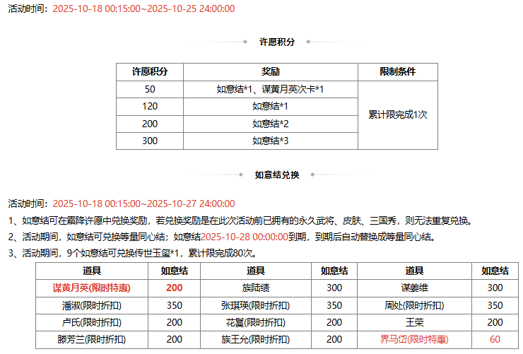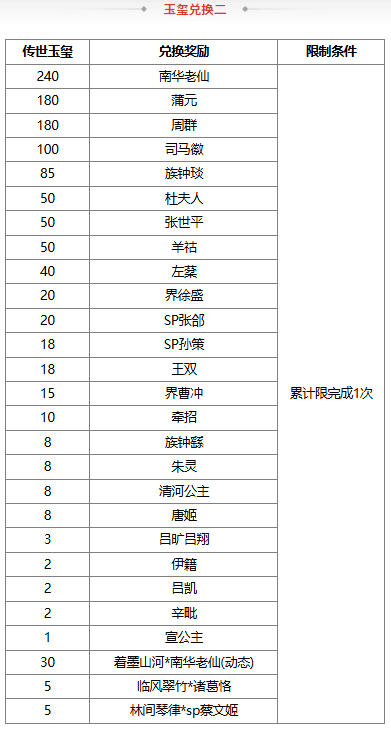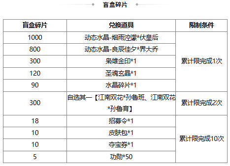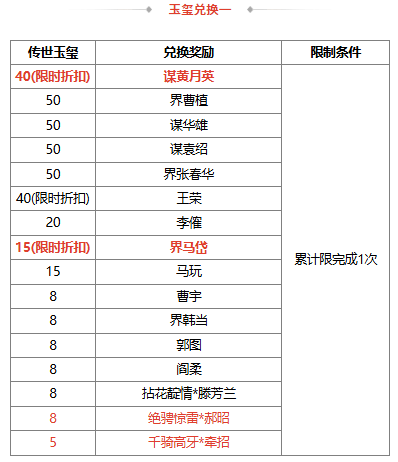 2、若兑换奖励是在此次活动前已拥有的永久武将、皮肤、三国秀,则无法重复兑换 ;