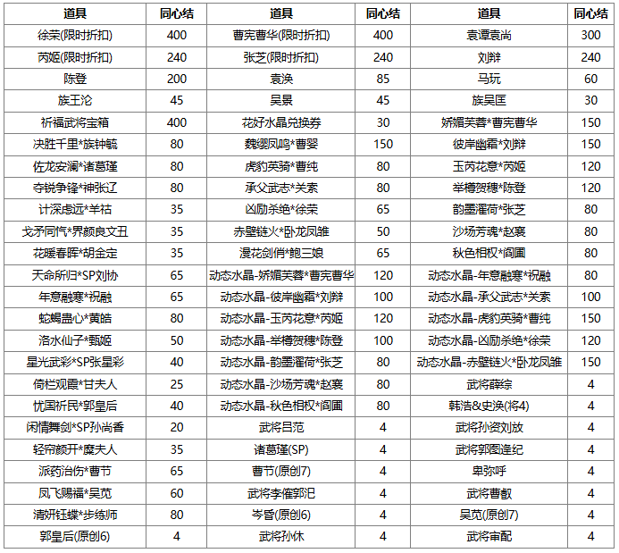 1、同心结可兑换奖励,若兑换奖励是在此次活动前已拥有的永久武将、皮肤、三国秀,则无法重复兑换。