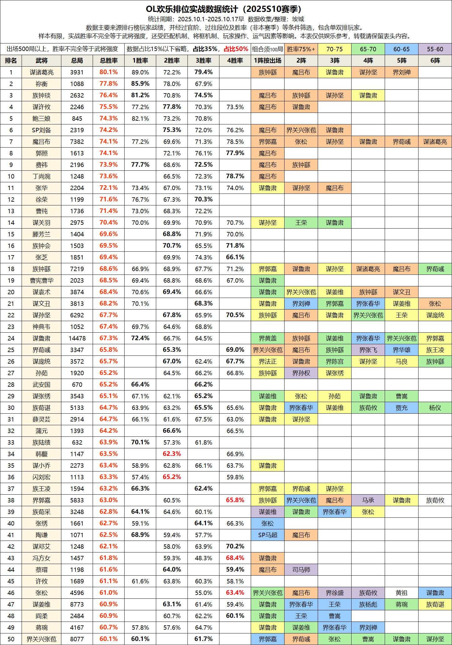 小伙伴们好,每月一期(这个月可能会有两期)的OL排位数据统计来了。