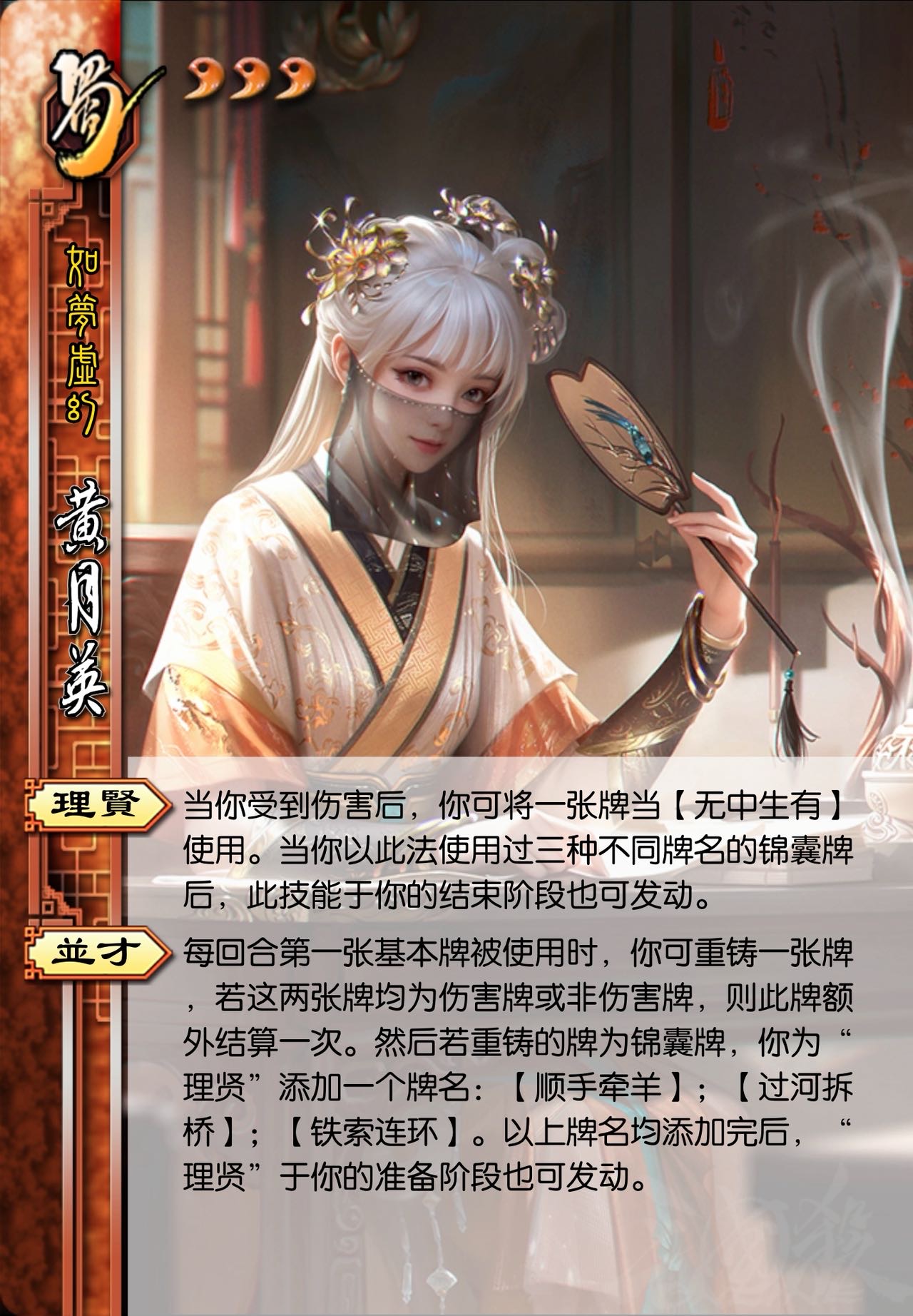 * 成长:若你重铸的牌是任何锦囊牌,你可以从【顺手牵羊】、【过河拆桥】、【铁索连环】中任意选择一项,为“理贤”添加该牌名。这是你加速成长的核心手段,添加顺序可自选,策略性极强。