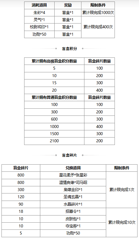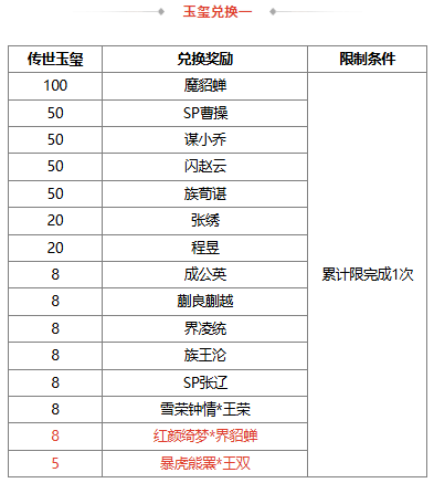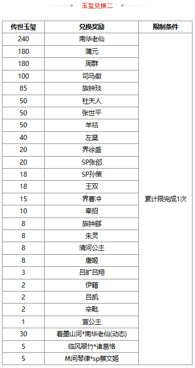 2、若兑换奖励是在此次活动前已拥有的永久武将、皮肤、三国秀,则无法重复兑换 ;