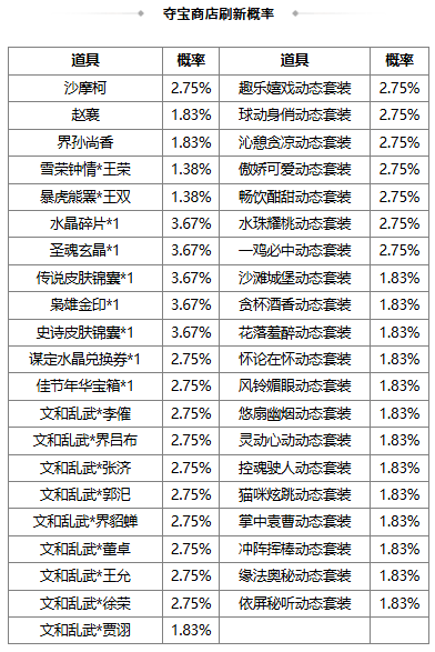 活动礼盒打开后,部分重复道具返还仙人草/夺宝重置券,具体详情见概率公示。