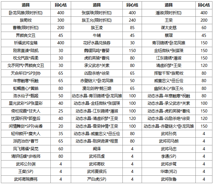 1、同心结可兑换奖励,若兑换奖励是在此次活动前已拥有的永久武将、皮肤、三国秀,则无法重复兑换。