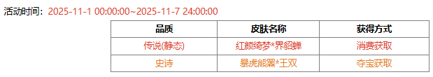 活动时间:2025-11-1 00:00:00~2025-11-7 24:00:00