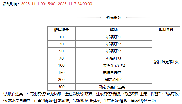 活动时间:2025-11-1 00:15:00~2025-11-9 24:00:00