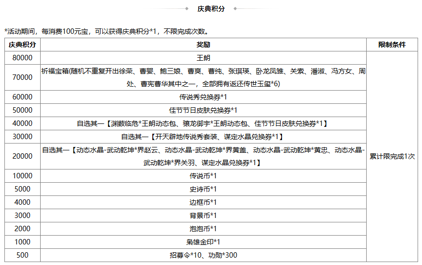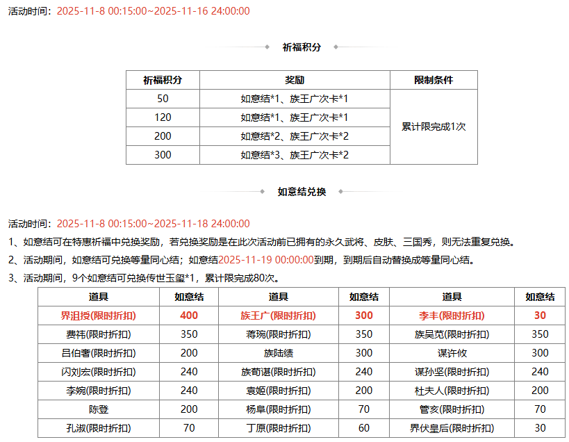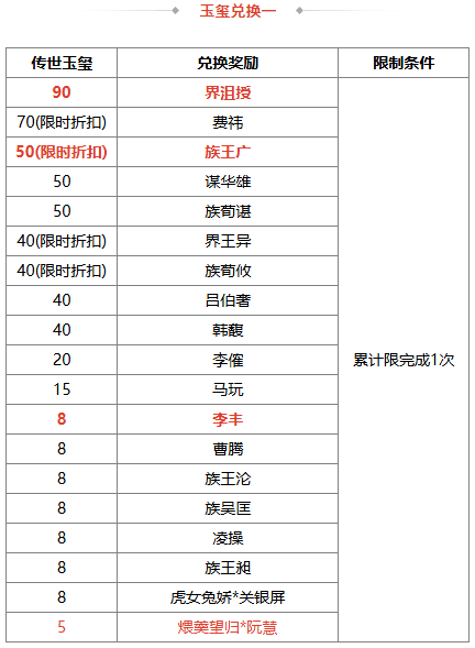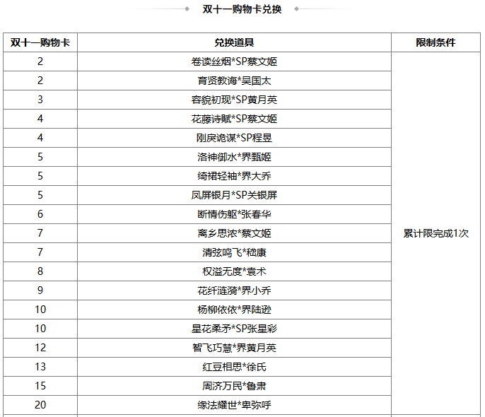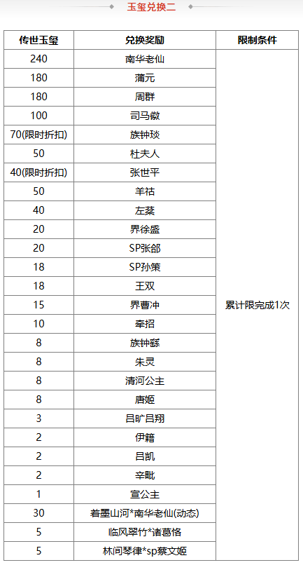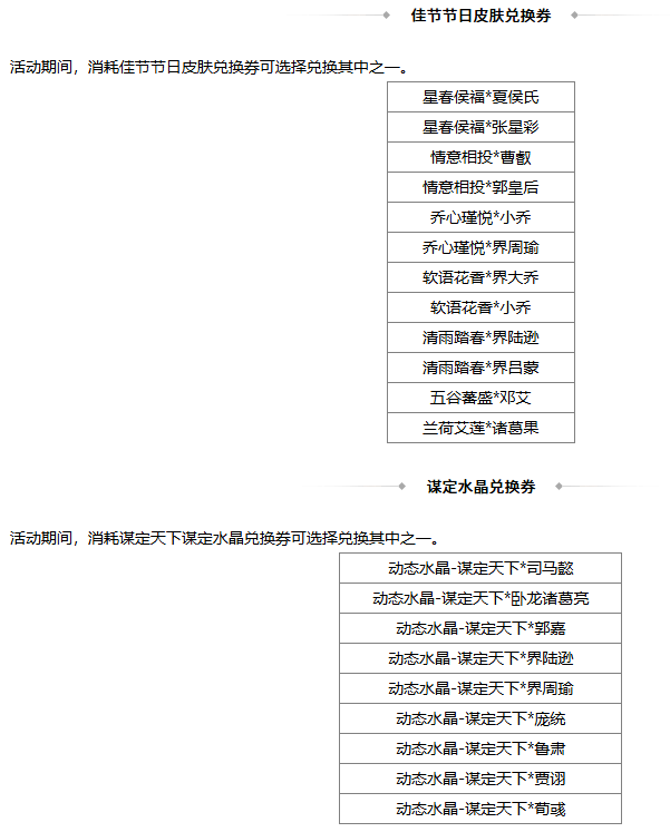 2、若兑换奖励是在此次活动前已拥有的永久武将、皮肤、三国秀,则无法重复兑换 ;