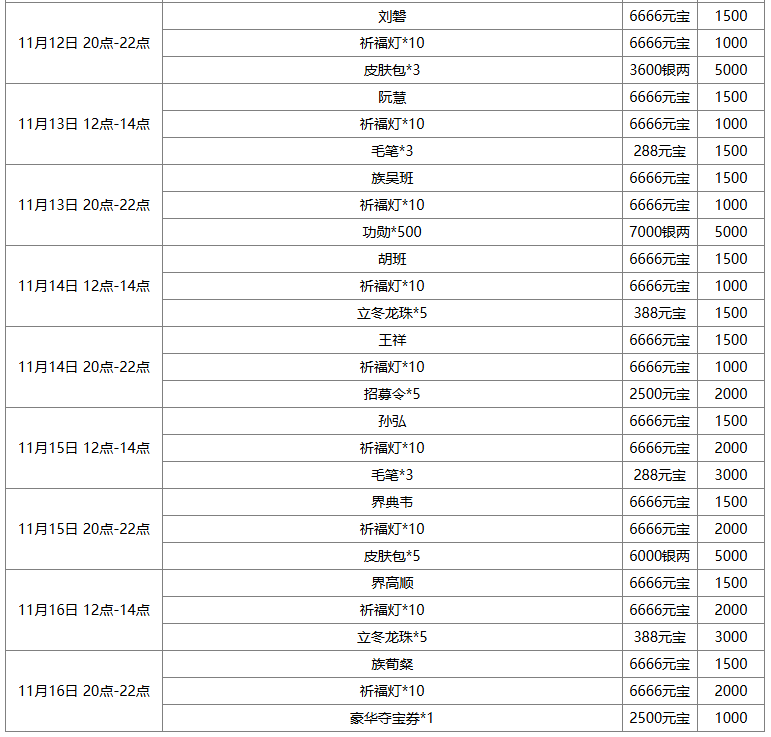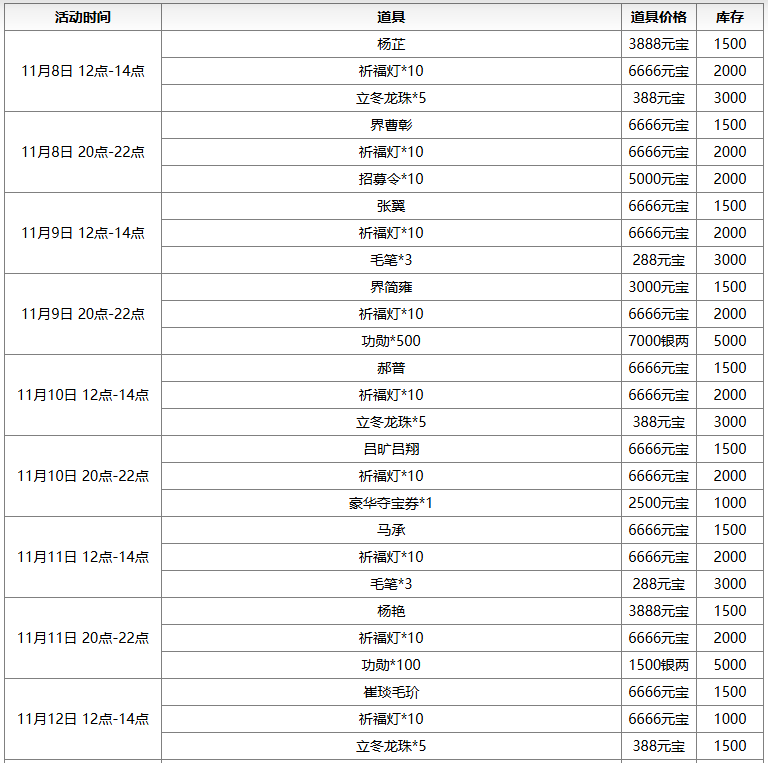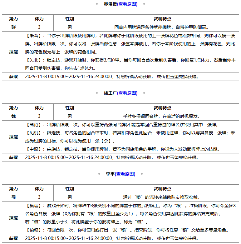 *本期返场 25出伏龙珠活动(界王异)、重阳龙珠活动(吕伯奢)、立冬龙珠活动(谋华雄)、小雪龙珠活动(韩馥),龙珠可购买时间:2025-11-8 00:15:00~2025-11-16 24:00:00;