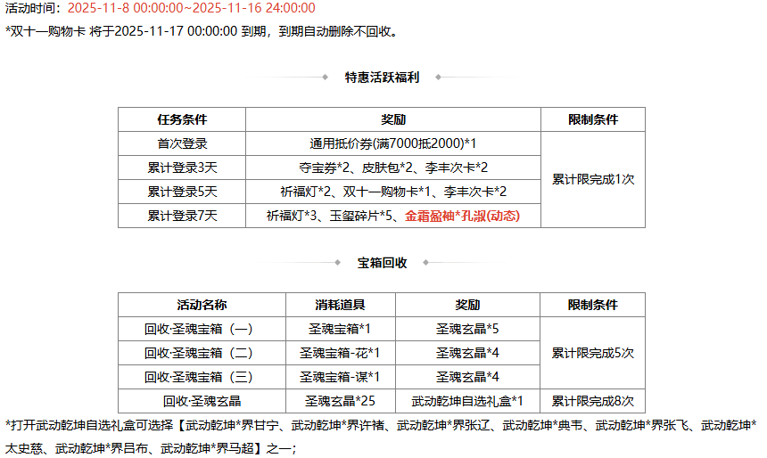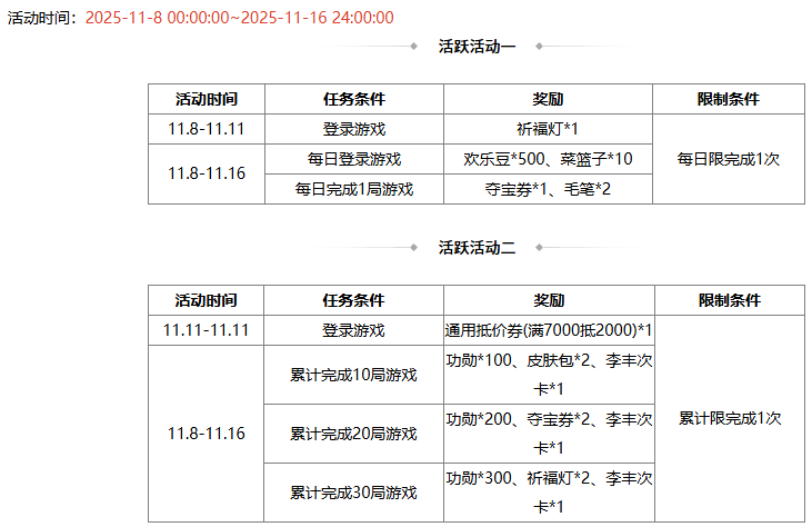 活动时间:2025-11-8 00:00:00 ~2025-11-16 24:00:00