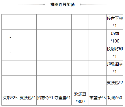 *翻开所有拼图即可获得当期活动动态皮肤大奖;