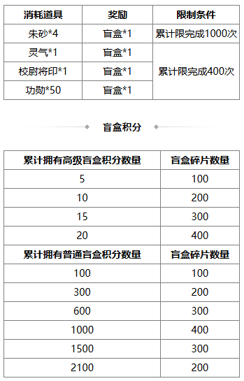 1、盲盒自动打开,开启盲盒可获得高级盲盒积分、普通盲盒积分、随机道具等;
