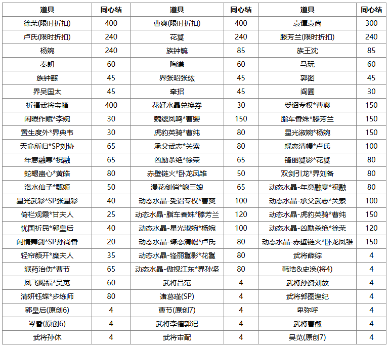 1、同心结可兑换奖励,若兑换奖励是在此次活动前已拥有的永久武将、皮肤、三国秀,则无法重复兑换。