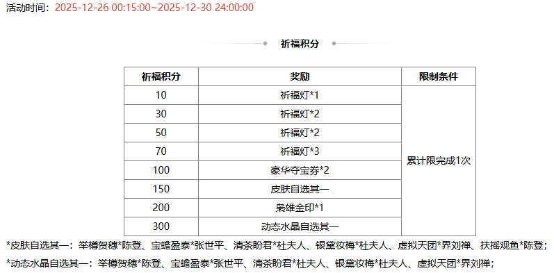 活动时间:2025-12-26 00:15:00~2025-12-30 24:00:00