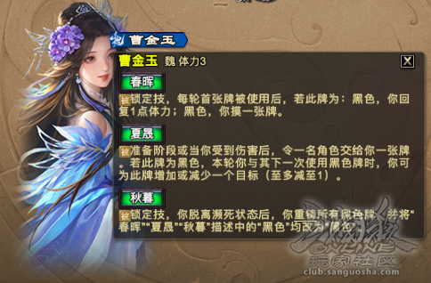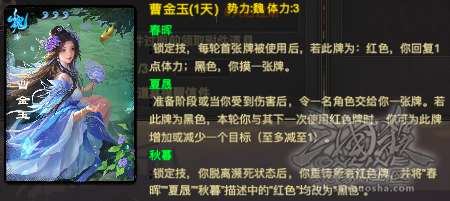 3.牌结算完才能触发,曹金玉在此牌结算之前死亡就吃不到增益效果。