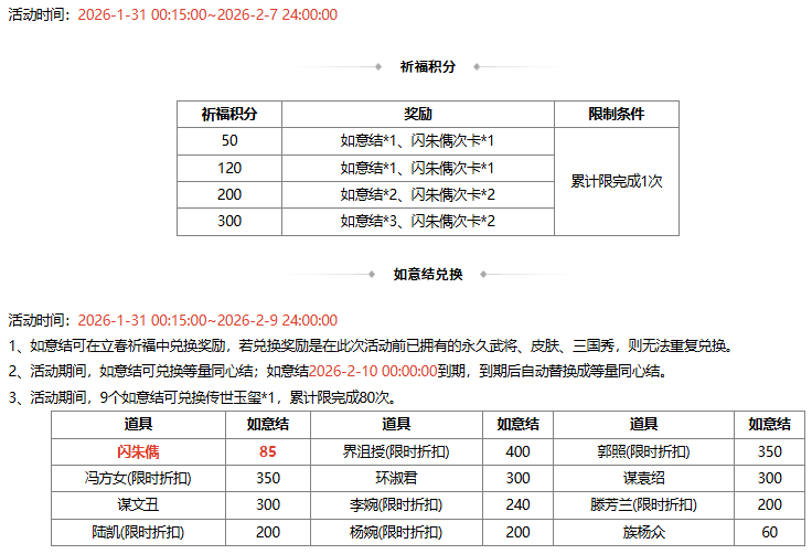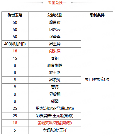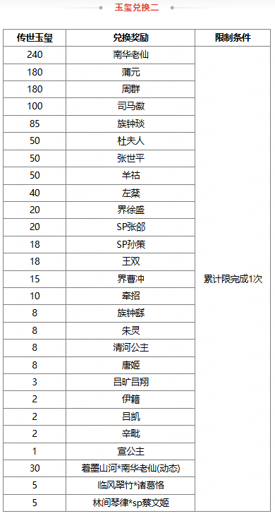 2、若兑换奖励是在此次活动前已拥有的永久武将、皮肤、三国秀,则无法重复兑换 ;