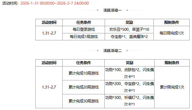 活动时间:2026-1-31 00:00:00 ~2026-2-7 24:00:00