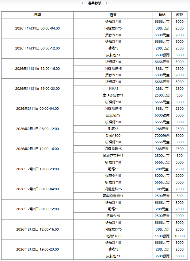 活动时间:2026-1-31 00:15:00~2026-2-9 24:00:00