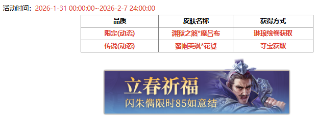 活动时间:2026-1-31 00:00:00~2026-2-7 24:00:00
