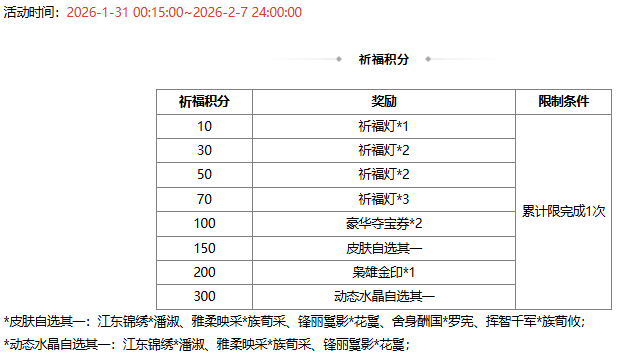 活动时间:2026-1-31 00:15:00~2026-2-7 24:00:00