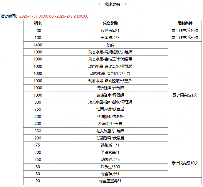 2、稻米 2026-2-10 00:00:00 到期,到期自动删除不回收。传世玉玺未消耗的可用于下期活动;