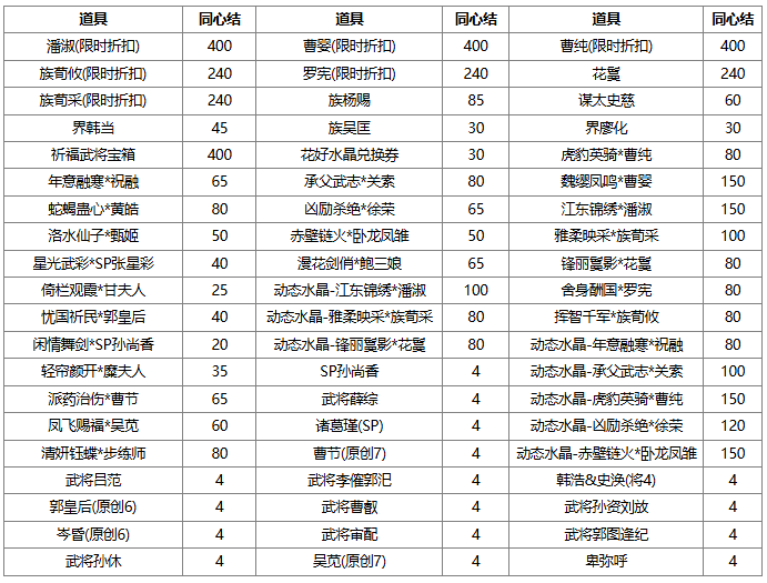 1、同心结可兑换奖励,若兑换奖励是在此次活动前已拥有的永久武将、皮肤、三国秀,则无法重复兑换。
