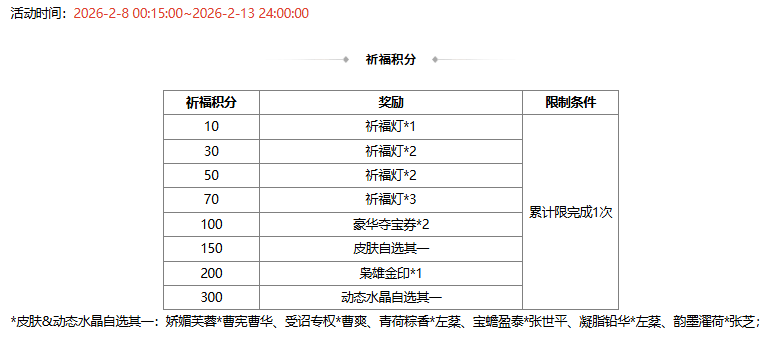 活动时间:2026-2-8 00:00:00~2026-2-13 24:00:00