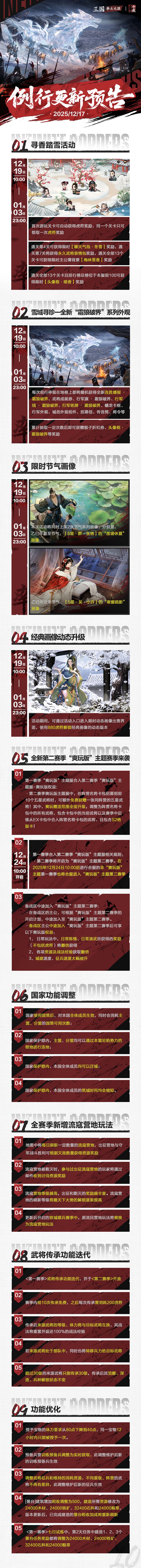 千里黄云白日曛,北风吹雁雪纷纷。感谢各位主公对《率土之滨》的支持,游戏将于12月17日上午10点对全服进行例行维护。