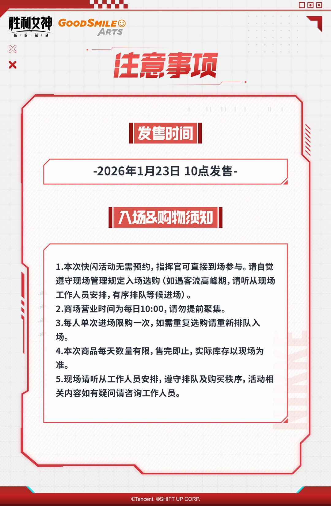本次活动无需预约,指挥官可直接到场参与。请自觉遵守现场管理规定入场选购(如遇客流高峰期,请听从现场工作人员安排,在指定排队区域有序等候进场)。