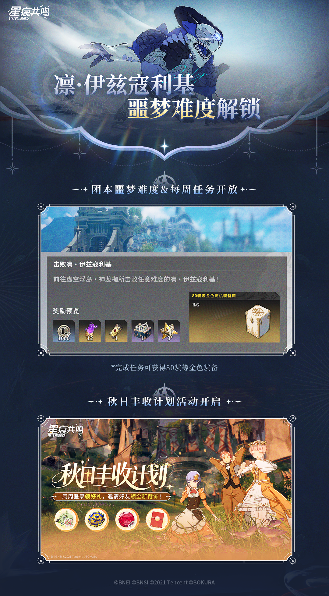 秋日丰收计划特别活动开启,周周登录领好礼,邀请好友还可领取全新背饰-艾露娜超开心。