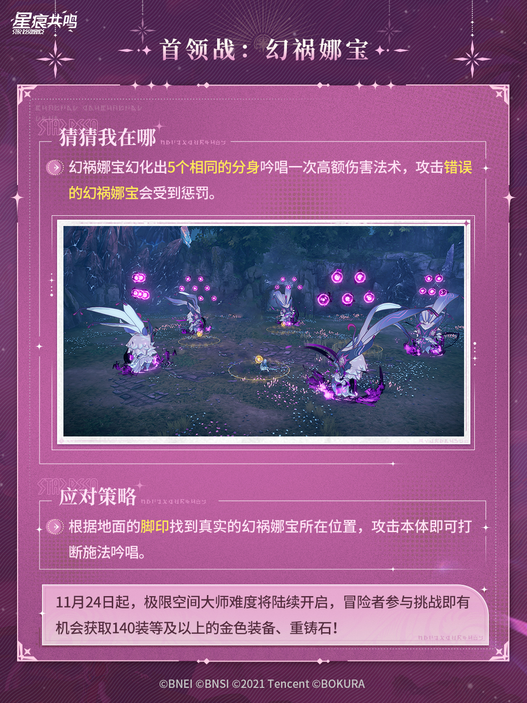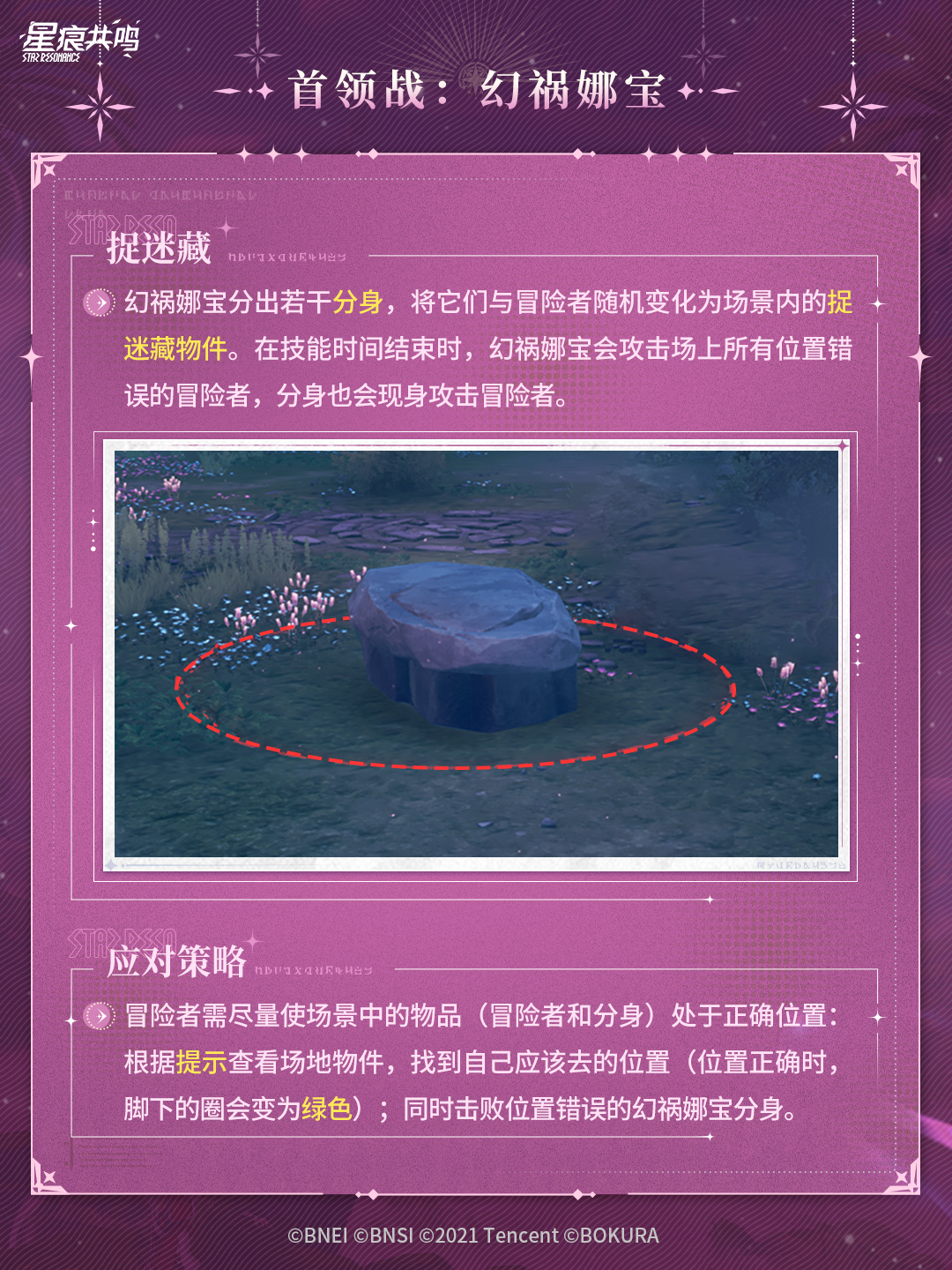 幻华流月之野目前已开放挑战,冒险者将在此遭遇喜爱恶作剧的幻祸娜宝——与其他首领不同,淘气的它在战斗中会施展分身和幻术来和冒险者“玩耍”,请注意观察战斗场地的细节,破解幻象的线索就隐藏其中!