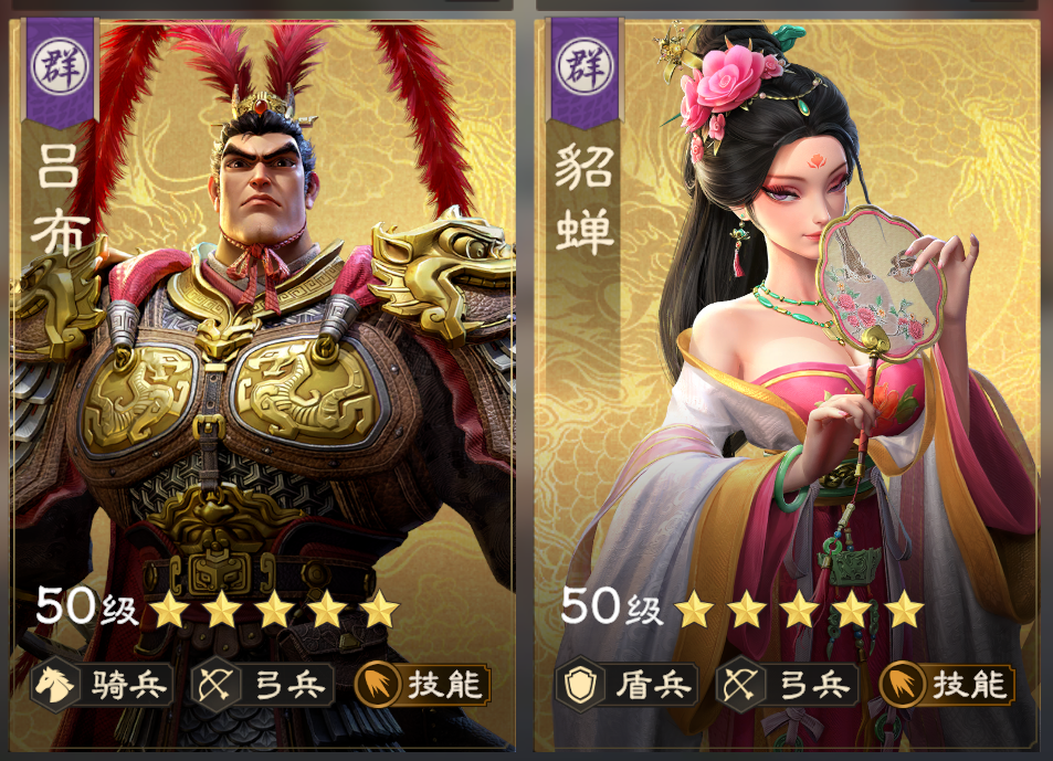 羁绊:2人同队激活美人连环(布阵选择阵型生效),提升部队统兵上限