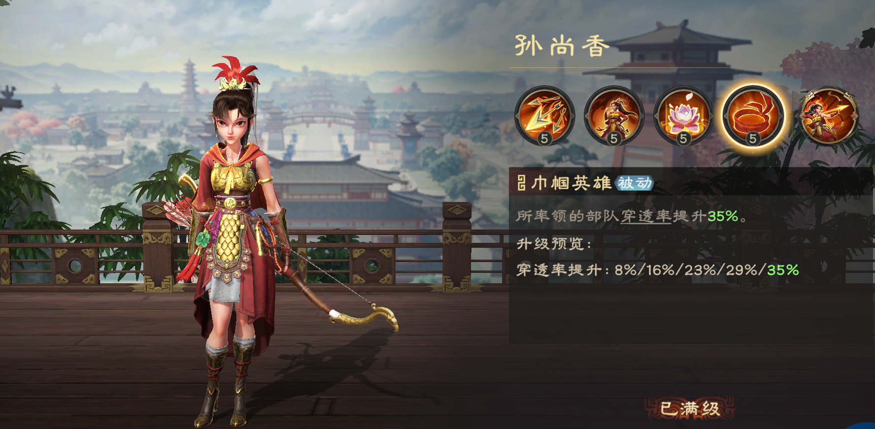 孙策可走弓兵、枪兵路线,普攻流一般来说首选弓兵,武射吏普攻概率击退,而且可提高暴击率。孙策被动可提供高额的暴击增伤,可通过普攻打出多频暴击,提升部队整体输出。