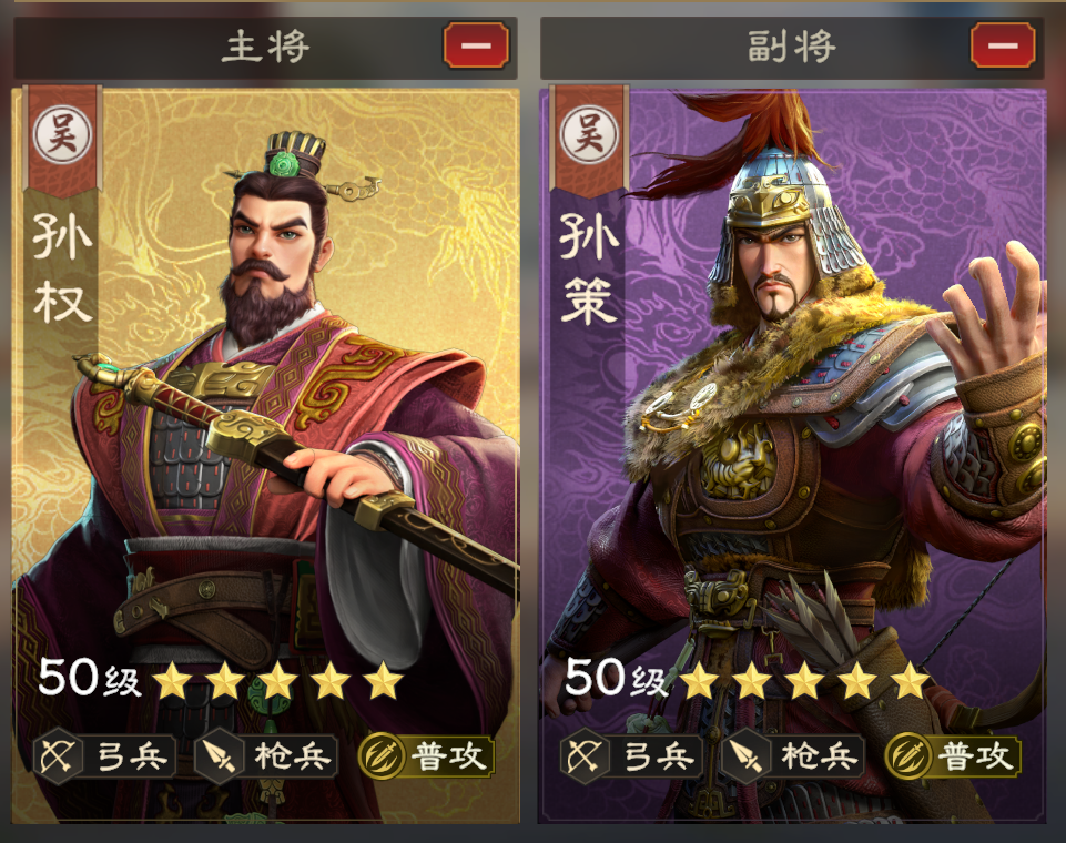 孙策的主要价值是“普攻流过渡”,除了搭配孙权、孙尚香以外,也可与太史慈、甘宁、曹丕等普攻流武将构建队伍。一般来说建议走弓兵路线,弓兵普攻覆盖更广,输出稳定。