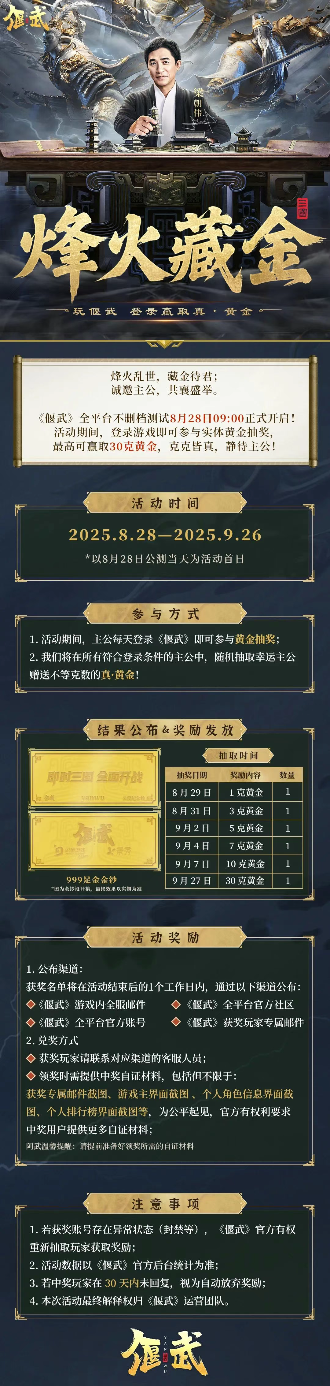 烽火藏金火热进行中,登录游戏即可参与抽实体黄金抽奖,