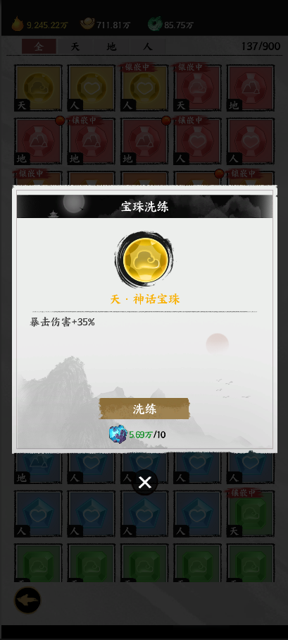 1. 洗练功能:在背包中点击宝珠,消耗特殊材料“淬魂”,可以重新随机这颗宝珠的词条属性。