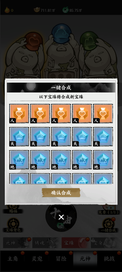 抽到了很多低品质的宝珠怎么办?别担心,“一键合成” 功能可以帮你变废为宝。