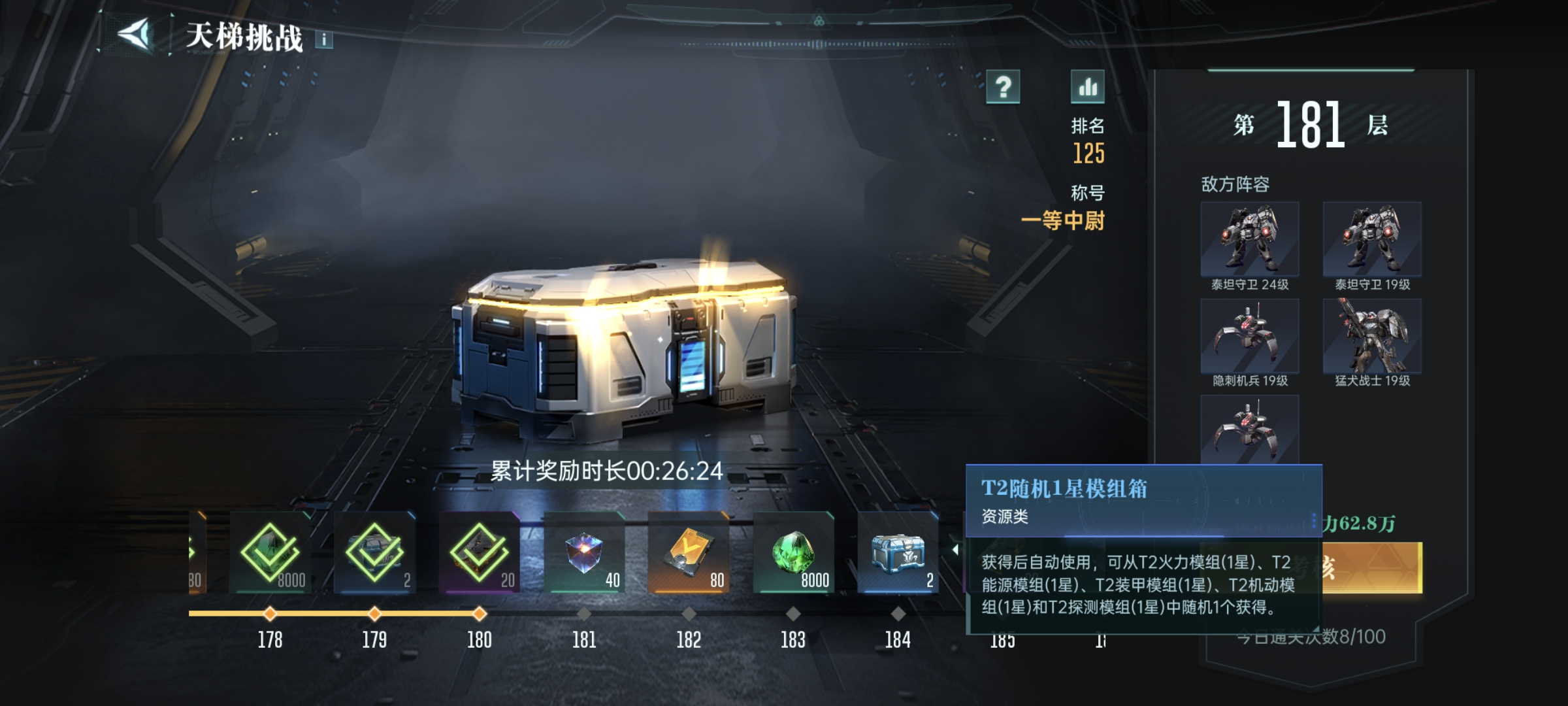 天梯这里有个小宝藏!前期每突破五层天梯,就能领1个T2箱。奋战到九十九层后,每五层可得2个。这可是长期稳定的模组供应站,只要坚持挑战,箱子拿到手软。