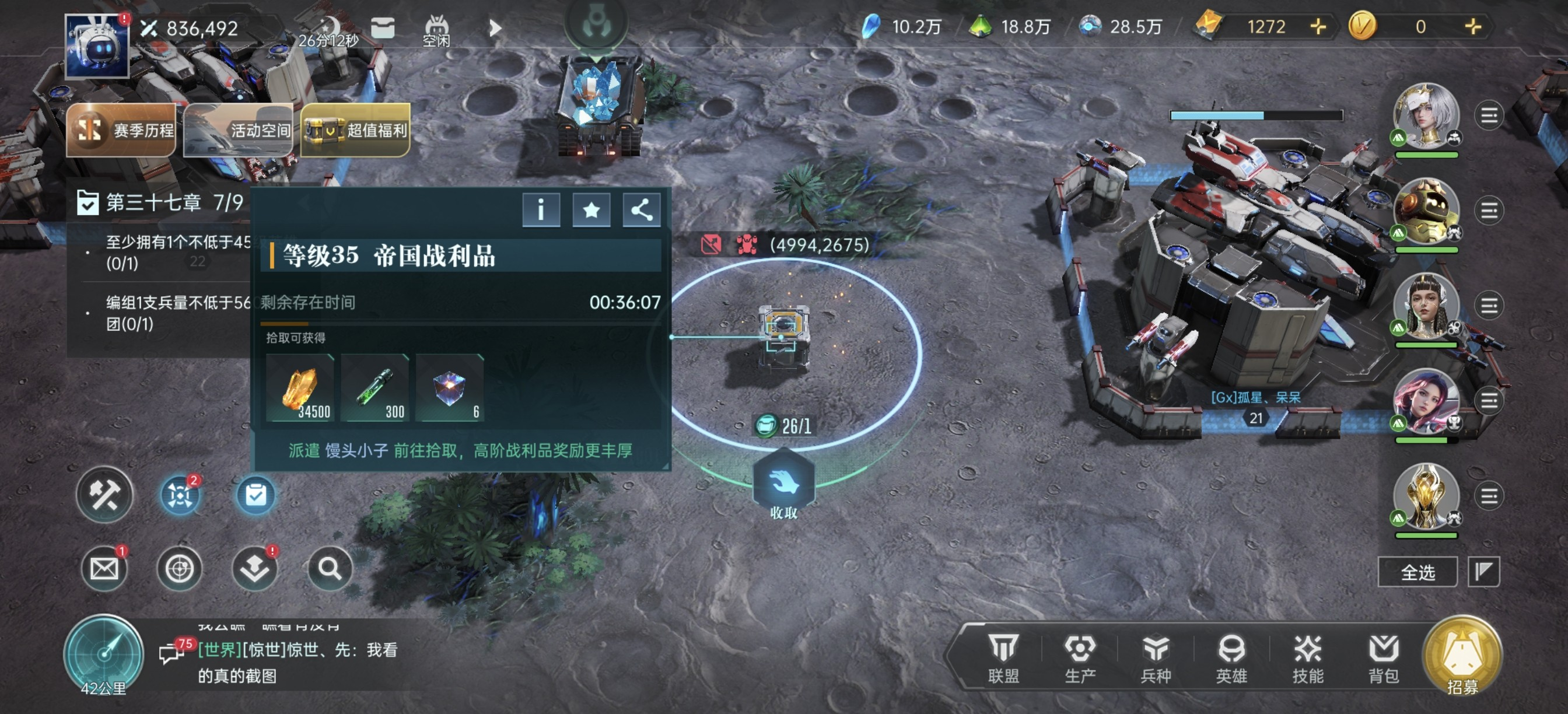 能组队后,就和盟友一起打到每个阶段的最高等级帝国军,才开始捡帝国战利品。这样能把有限的战利品点数作用发挥到极致,通过这样的打法获取的原能结晶和经验药剂,也能让你的英雄和技能等级领先其他玩家。