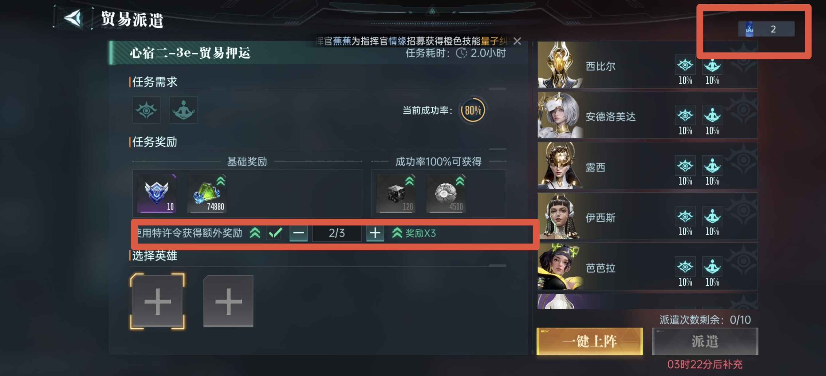 贸易特许令可以加倍获取奖励,使用优先级橙色任务>紫色任务>绿色任务。