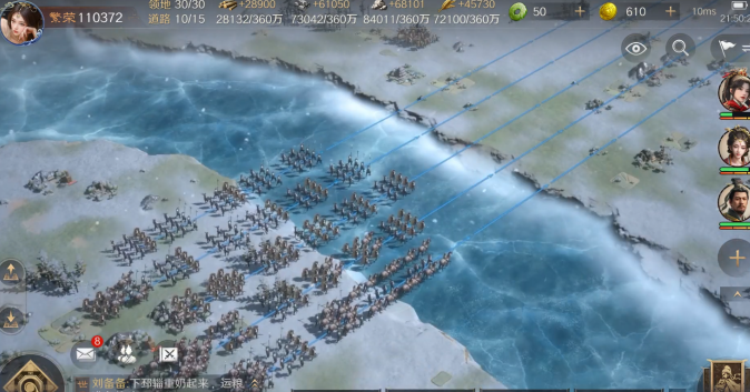 这游戏的美术和文化细节也做得很好。高品质的国风美术,人物立绘、UI设计都很考究细节。剧情、台词、武将技能融入了大量历史典故,重要关卡参考历史地形,还有即时制沙盘战斗,让大家能感受到浓厚的三国历史沉浸感。
