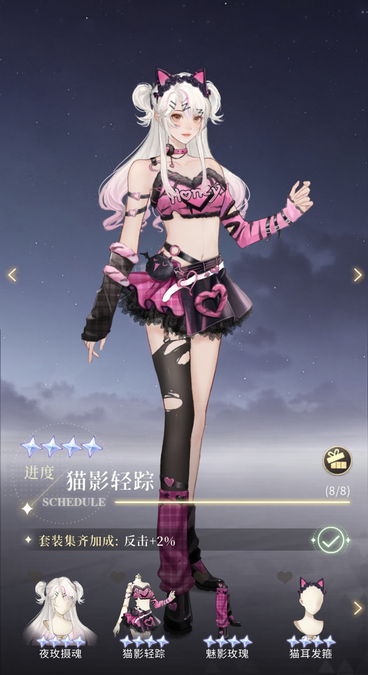 集齐「猫影轻踪」套装可获得反击加成。