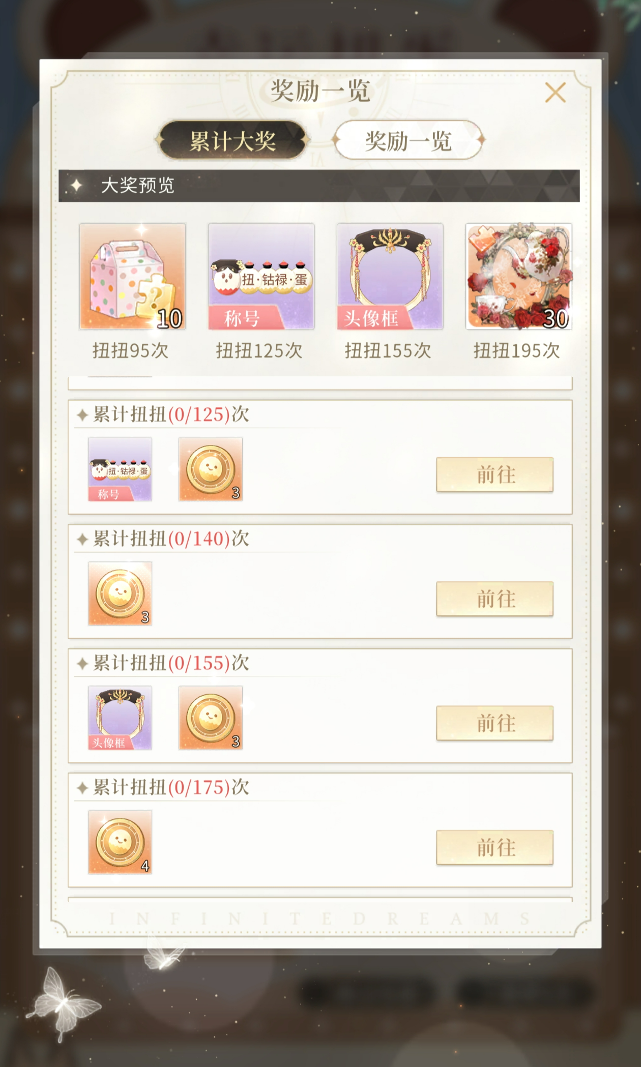 还有还有,累计扭蛋达到一定次数后,将会解锁图腾碎片盲盒、“永夜幻境碎片“、以及「扭·钴禄·蛋」头像框&称号&聊天框等丰厚奖励!
