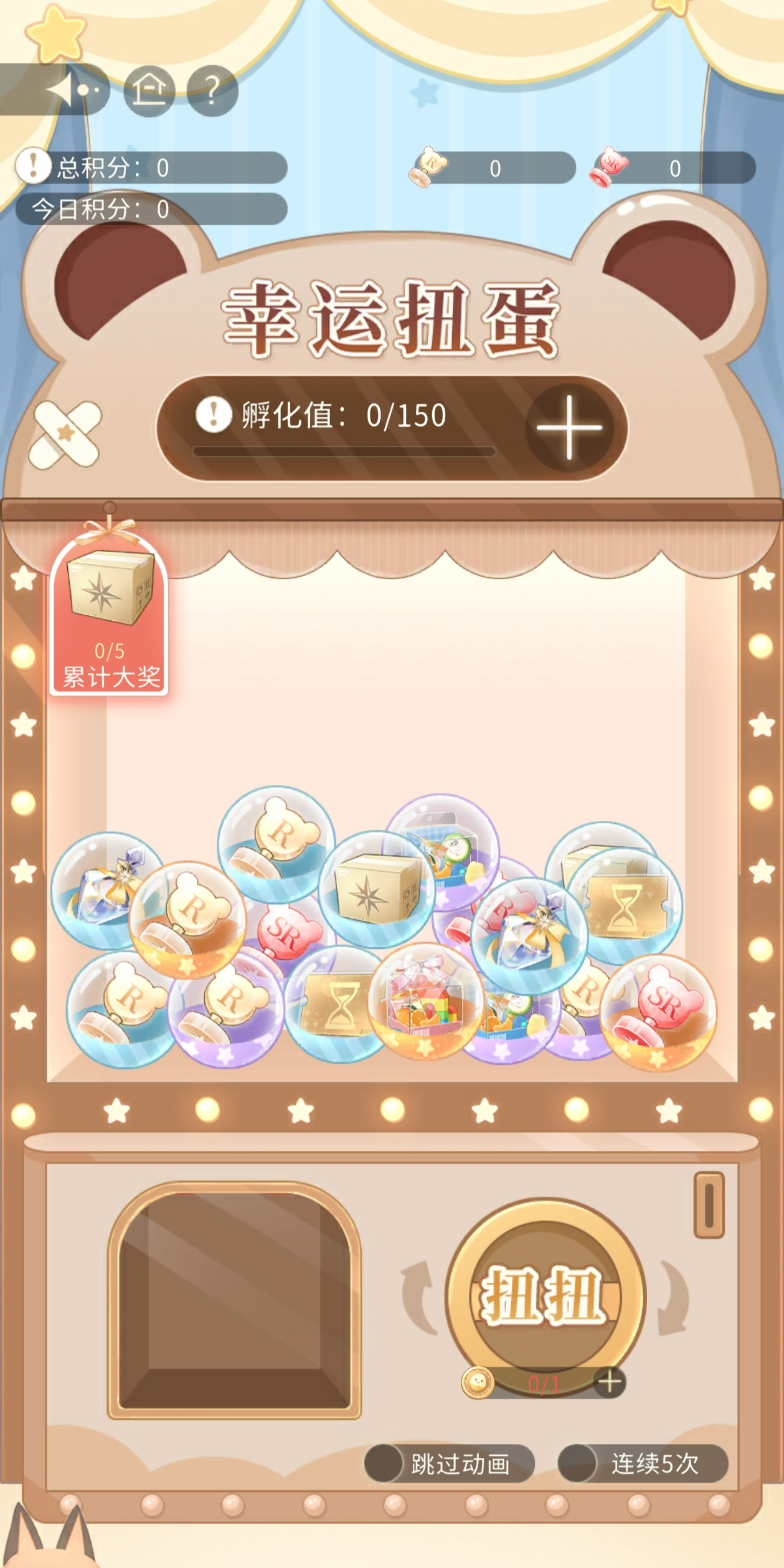 扭蛋机里的宝贝有A/B/C赏三个级别,以及自选的幸运大赏~