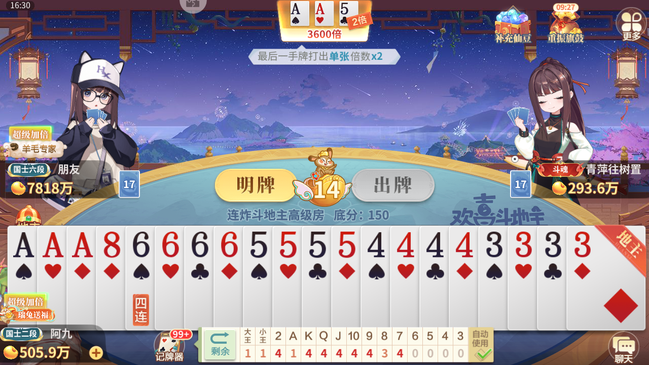 如果说传统斗地主中王炸就已经傲视群雄,那连炸玩法让你知道什么是人外有人天外有天,一手二连炸够用、三连炸傲视群雄,牌局内的情况变化莫测,在经典玩法中手牌太差不用怕,在连炸玩法中,人人都想抢地主,天牌从此不再是梦想!叫地主抢地主明牌一气呵成~
