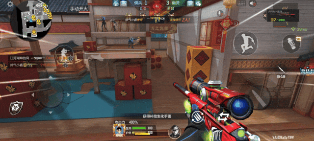 B点区域上方是一盏巨大的宫灯,周围由许多福字和灯笼连接而成,下方则进行了多方面改动。从地形结构上看,该区域的建筑物非常高,并且通道十分地狭窄。对于人类阵营而言,是一个易守难攻的绝佳点位,根据地形结构,我们把它分为四个防守区域。